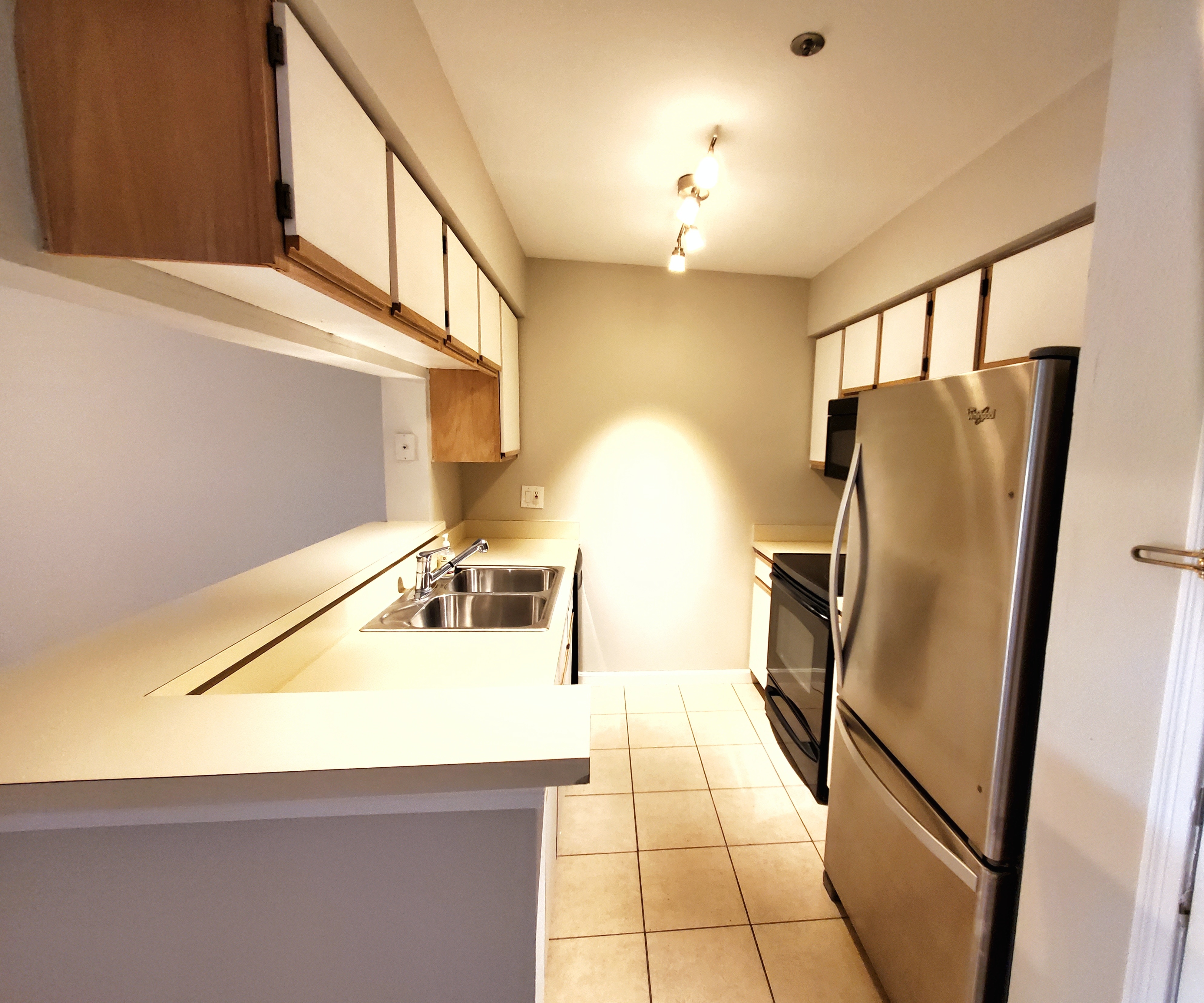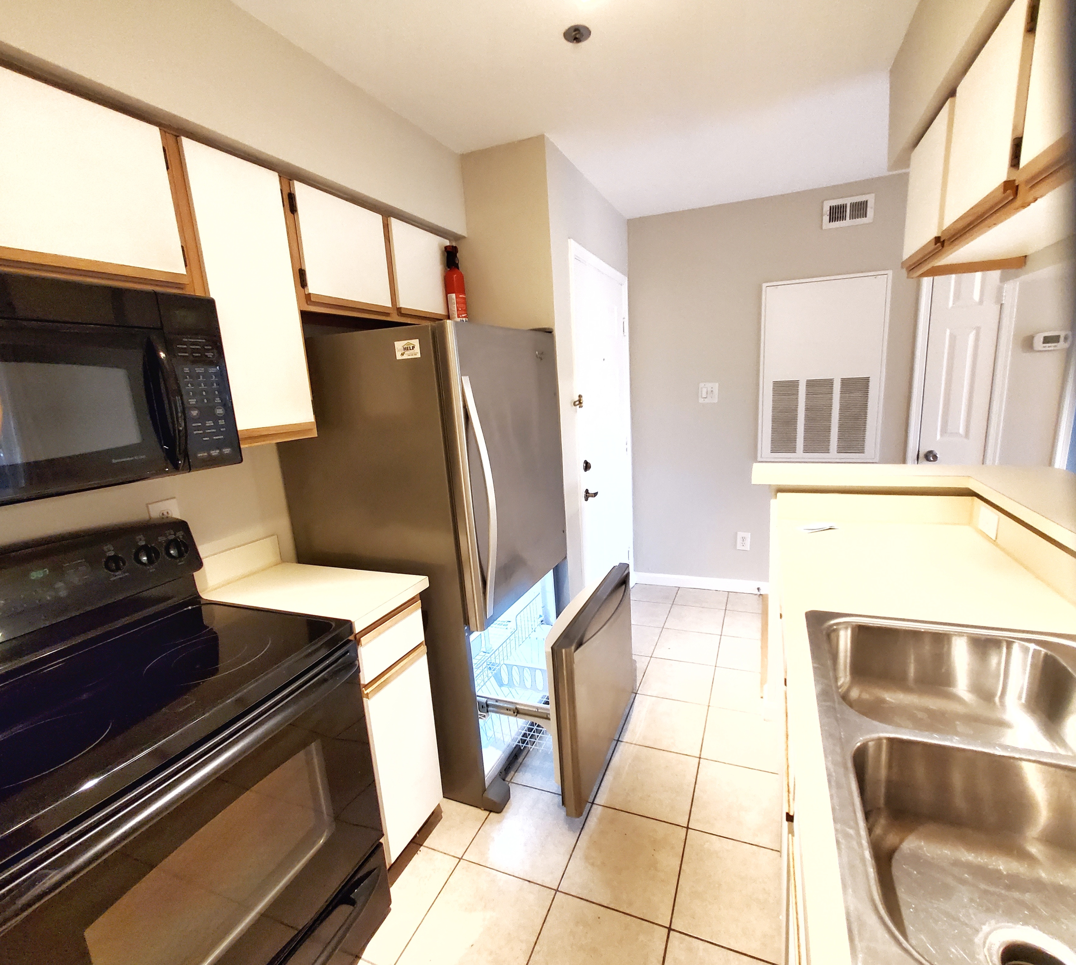 Tons of cabinet space, electric stove, microwave, dishwasher, garbage disposal